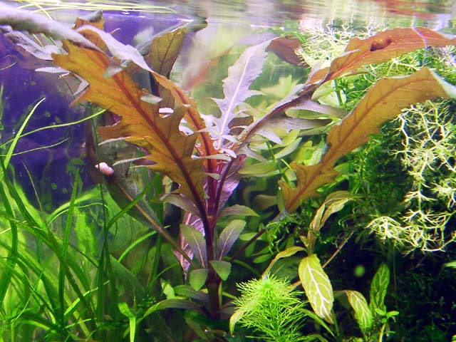 | 分布 | インド(ビハ−ル州) | 水中葉は大型化すると葉がギザギザ(羽状深裂)になる。 | |