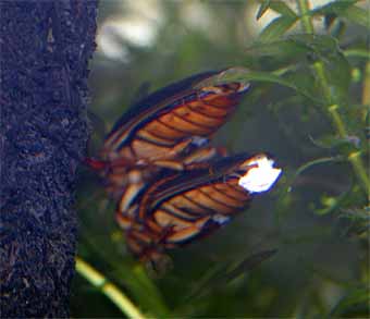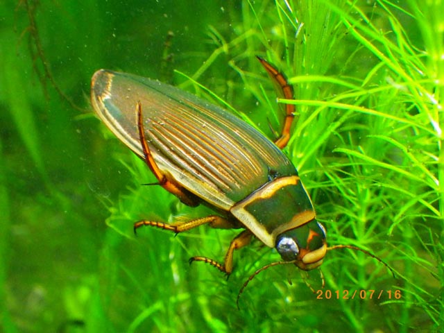 水深のかなり深いところでも生活している為か、浅い水深を好むシャープゲンゴロウモドキとくらべ泳ぎが上手な印象を受ける。