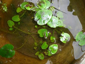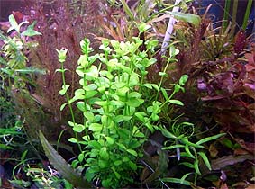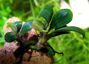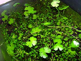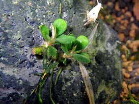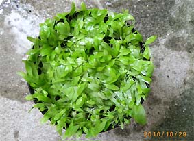 ウォーターバコパ (バコパ カロリニアーナ) 丈夫で低温にも強く冬季ヒーターをいれない水槽で使用できる。(屋外でも越冬している)。その他、中型ゲンゴロウの産卵用としても便利。枯れかけた下葉はビーシュリンプの好物。水上葉は良い香りがする。 難易度 ★★☆☆☆ 光量 ★★★☆☆ |