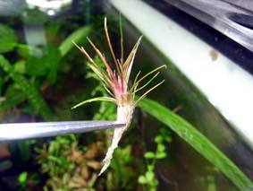 ハイグロフィラ ピンナティフィダ 流木等に活着する性質がある珍しいハイグロ。 ランナーを出しながら植える。 難易度 ★★☆☆☆ 光量 ★★☆☆☆ |