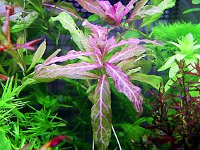 ハイグロフィラ ロザエネルヴィス ハイグロフィラ ポリスペルマの改良種で 上のほうの葉脈が白くなったりピンク色に染まる。 見かけの異なる数種類のタイプがあるようだが、 育成条件の違いによる変化も大きい。 難易度 ★★☆☆☆ 光量 ★★★☆☆ |
