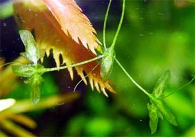 | アメリカンスプライト 丈夫で成長も早いので初心者の方やスターティン グプランツとしてお勧め。葉に子株をつけてどんど ん増えます。CO2添加なしでも成長が早い。 難易度 ★☆☆☆☆ 光量 ★★☆☆☆ |