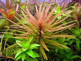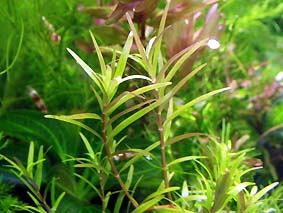 ハイグロコリンボサ・コンパクタ (テンプルプラントコンパクト、ミニテンプルプラント) 節間が詰まったテンプルプラントの改良種。 ライトグリーンが鮮やか。 難易度 ★★★☆☆ 光量 ★★★☆☆ |
